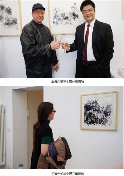 由芭芭拉·施密特小姐策展的王清州(WANG QINGZHOU)抽象水墨作品展(ABSTRAKTE TUSCHEZEICHNUNGEN)于2015年4月11日至4月26日在柏林PROJEKTRAUM WEDDING举行。在4月17日,艺术家王清州先生、策展人芭芭拉·施密特小姐、法裔德籍画家Lion先生、音乐家GeroloMarr先生、策展人李玖玲小姐、导演西蒙先生,Yang Liu先生、祝戴先生、Liu Jing小姐,以及柏林当地收藏家和艺术爱好者陆续在气氛热烈的画展开幕酒会现场。